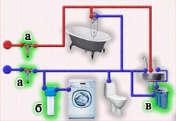 Очистка воды в квартире. Стандарный вариант - механическая очистка холодной и горячей воды. Очистка от запаха и цвета. Установка фильтров от накипи для стиральной машины и бойлера.